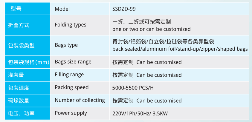 .The equipment can be customized according to customer needs and is suitable for the packagingof multiple non-woven fabric hand mask and skin masks. It can perform various functions such asroll cuttning, folding, stacking, bagging, filling, venting, sealing, and output.