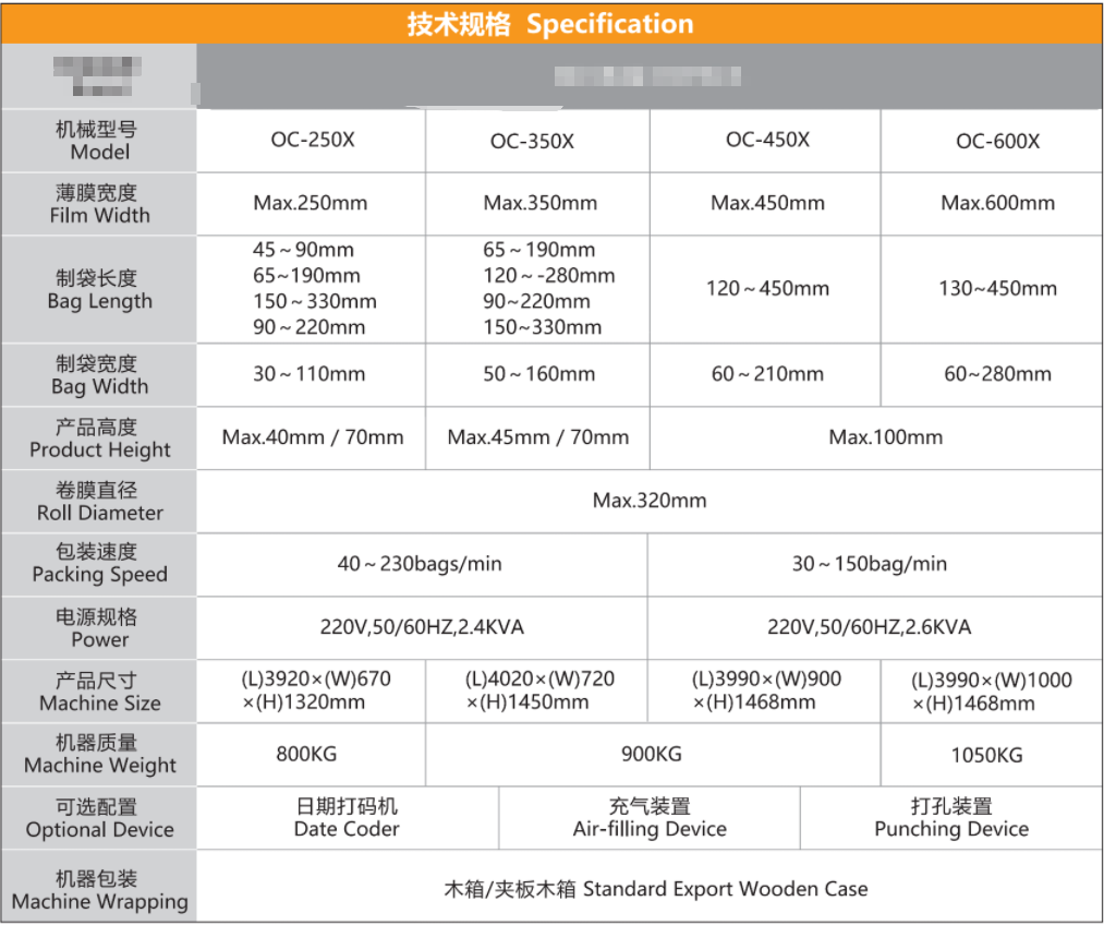 Product name: Down Paper Pillow Packaging MachineModel:ZBOC-250X/350X/450X/600XFunction Description:Packaging soft, strip & unorganized goods like towel, tissues, noodles, egg rolls, sausages, fish, ice-lollies,soft candy, fresh fruit etc. Get A Quote Parameter Usage Scienario Not sure if this model fits your production goals? Let our engineers design a tailored solution for your factory. Get My Solution
