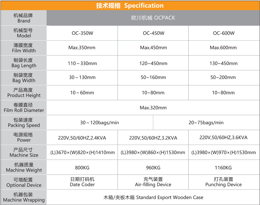 Product name: Reciprocating Pillow Packaging Machine