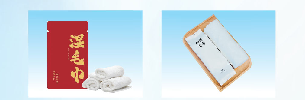 Used in the production field of towel products used by major airlines to pertorm a series offunctions such as accurate folding, winding into bags, automatic filling and sealing of towel,facial mask and other materials